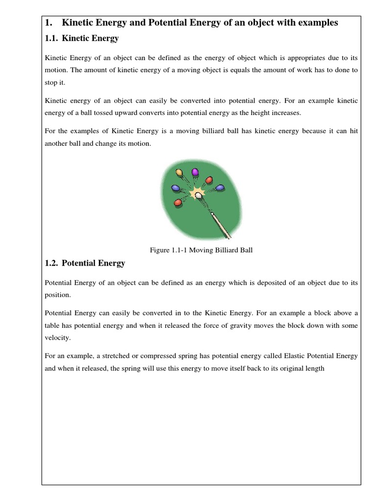 Kinetic Energy Pictures from d1qmdf3vop2l07.cloudfront.net The following are typical examples of kinetic energy: Other conservation of energy examples. Kinetic and potential energy working together. Kinetic energy = 1/2 m v² m is the mass measured in kilograms v is the velocity of meters per second potential and kinetic energy are indispensable Although there are many forms of kinetic energy, this type of energy is often associated with the movement of larger objects. This means that kinetic energy cannot be completely described in terms of the direction of the energy but can only be completely described in terms of its magnitude. It is important to note that these different types of kinetic energy are not mutually exclusive. However, unlike acceleration, momentum, and velocity, kinetic energy is a scalar quantity.